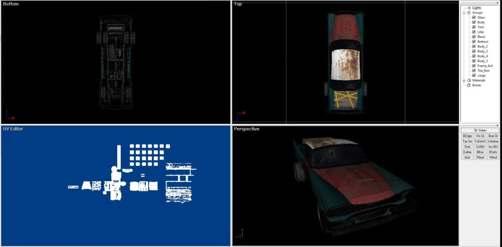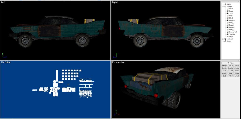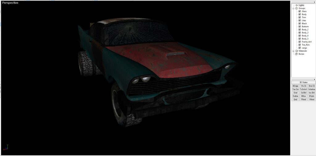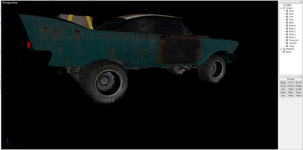 This is a Wastelands version I made. I liked the car enough to make it, and it was not an easy model to build. Almost finished and I decided to keep working and create one more version… Direct X, FBX, 3DS and OBJ and image maps…