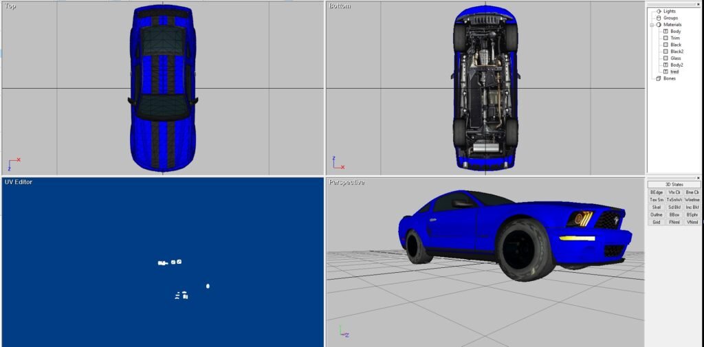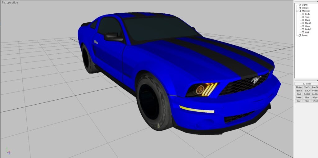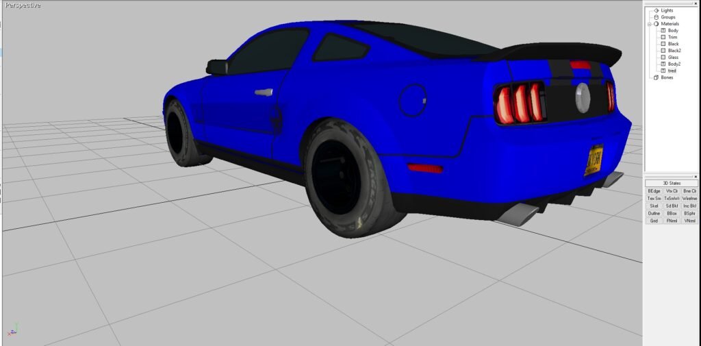 A 2006 Ford Mustang GT. A fantasy what if car that was not built in this offering. The stripe package, lo-poly body and graphics set this model apart. This model is designed and rendered in Direct X. The ZIP file also includes converted files in 3DS, OBJ, FBX and includes the maps and graphics as shown on the images below.