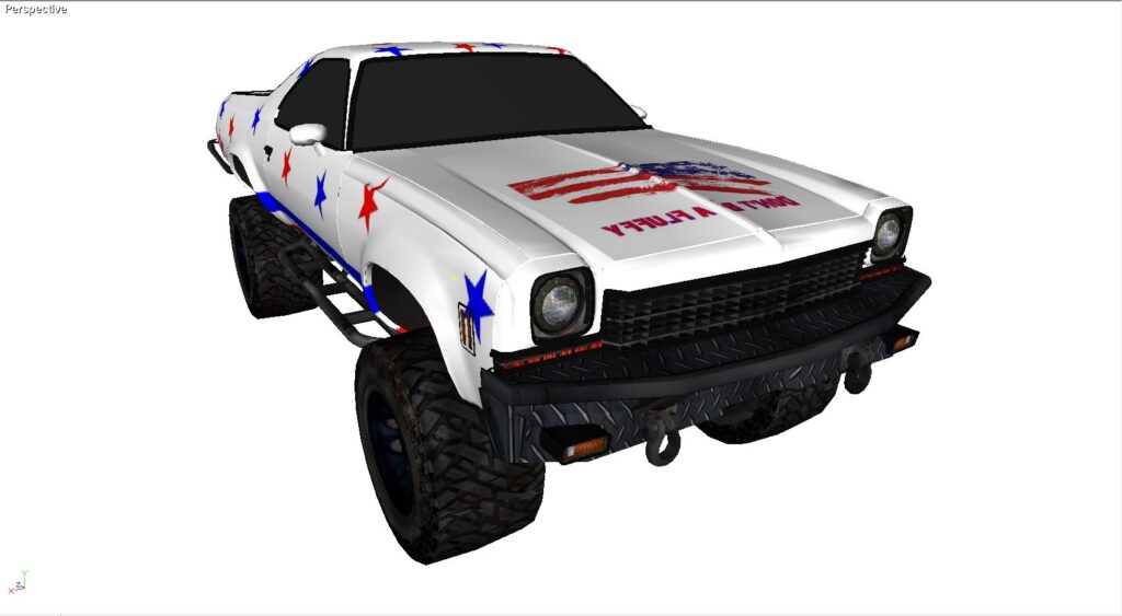 I didn’t want to do an exact render, so I came up with my own American Patriotic paint theme. I also did a solid red version and a street version.
