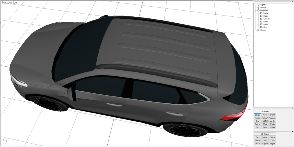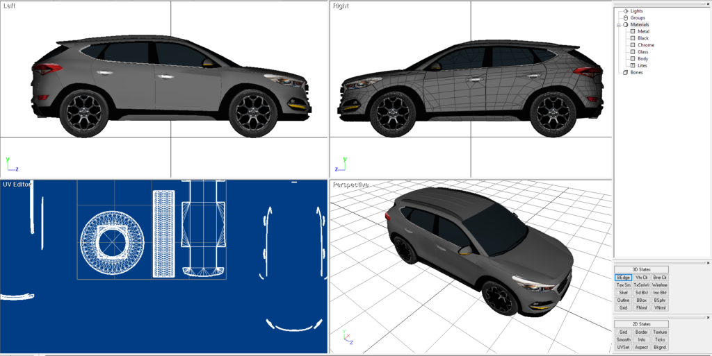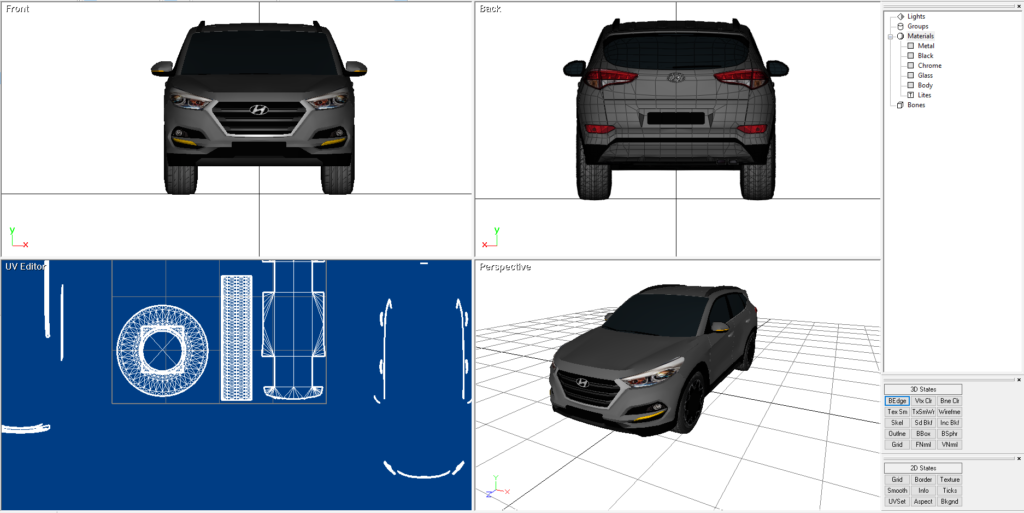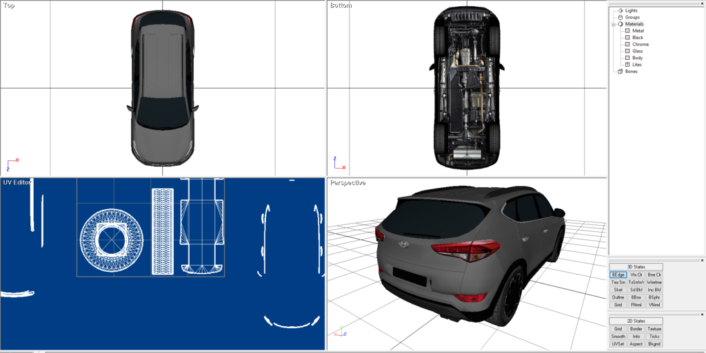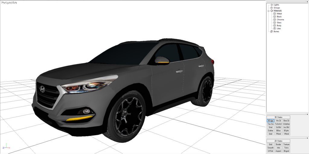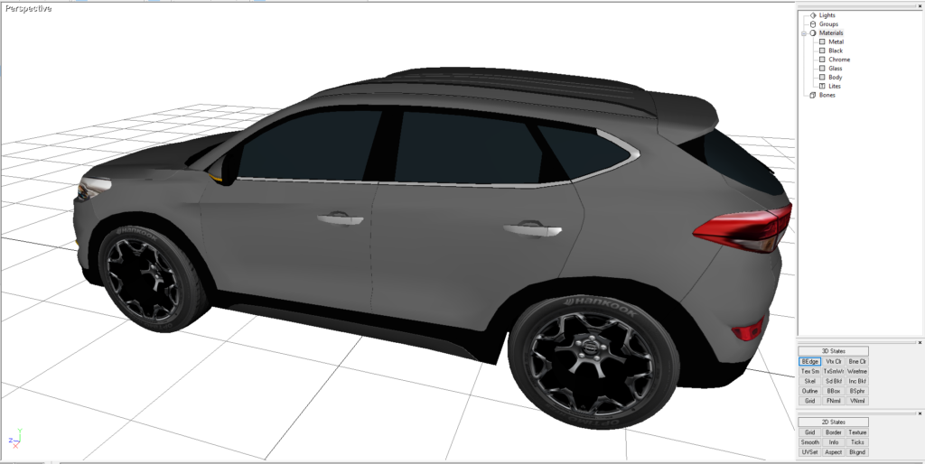 A Hyundai Tucson just because I like the way it looked. I would drive one. I made this and added it to RAD Sandbox. This was built and rendered in Direct X 9. It is also rendered in the following formats as well. OBJ, 3DS and FBX. It comes with the maps to make the model appear as shown.