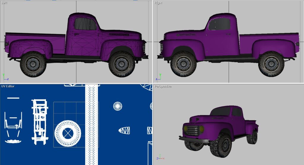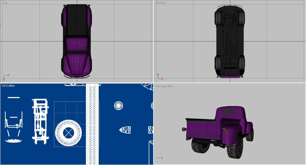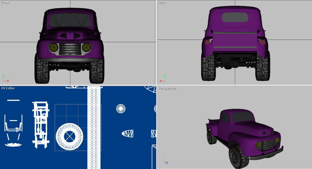 Old Ford truck converted to 4X4. I built this model to add to an off-road game. I did that and then I added it to RAD Sandbox to use there. I ended up making several other older trucks because of this model. This is done in Direct X and all the maps are with it. At the end of the video there are a few seconds of AI I did with the truck model too.