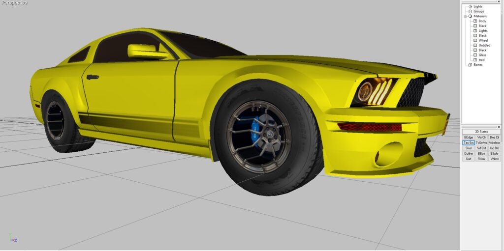 A retro Mustang design with a custom stripe package. A Retro Ford Mustang. A fantasy what if car that was not built in this offering. The stripe package, lo-poly body and graphics set this model apart. This model is designed and rendered in Direct X. The ZIP file also includes converted files in 3DS, OBJ, FBX and includes the maps and graphics as shown on the images below.